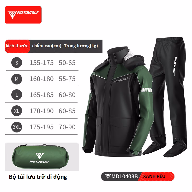 Ver2 Áo Mưa Bộ Cao Cấp MOTOWOLF [Có Trùm Giày] MDL0403BB là một trong những sản phẩm áo mưa bộ cao cấp đang được ưa chuộng trên thị trường hiện nay. Với thiết kế thông minh và chất liệu cao cấp, bộ áo mưa này đảm bảo được sự thoải mái và an toàn cho người mặc.