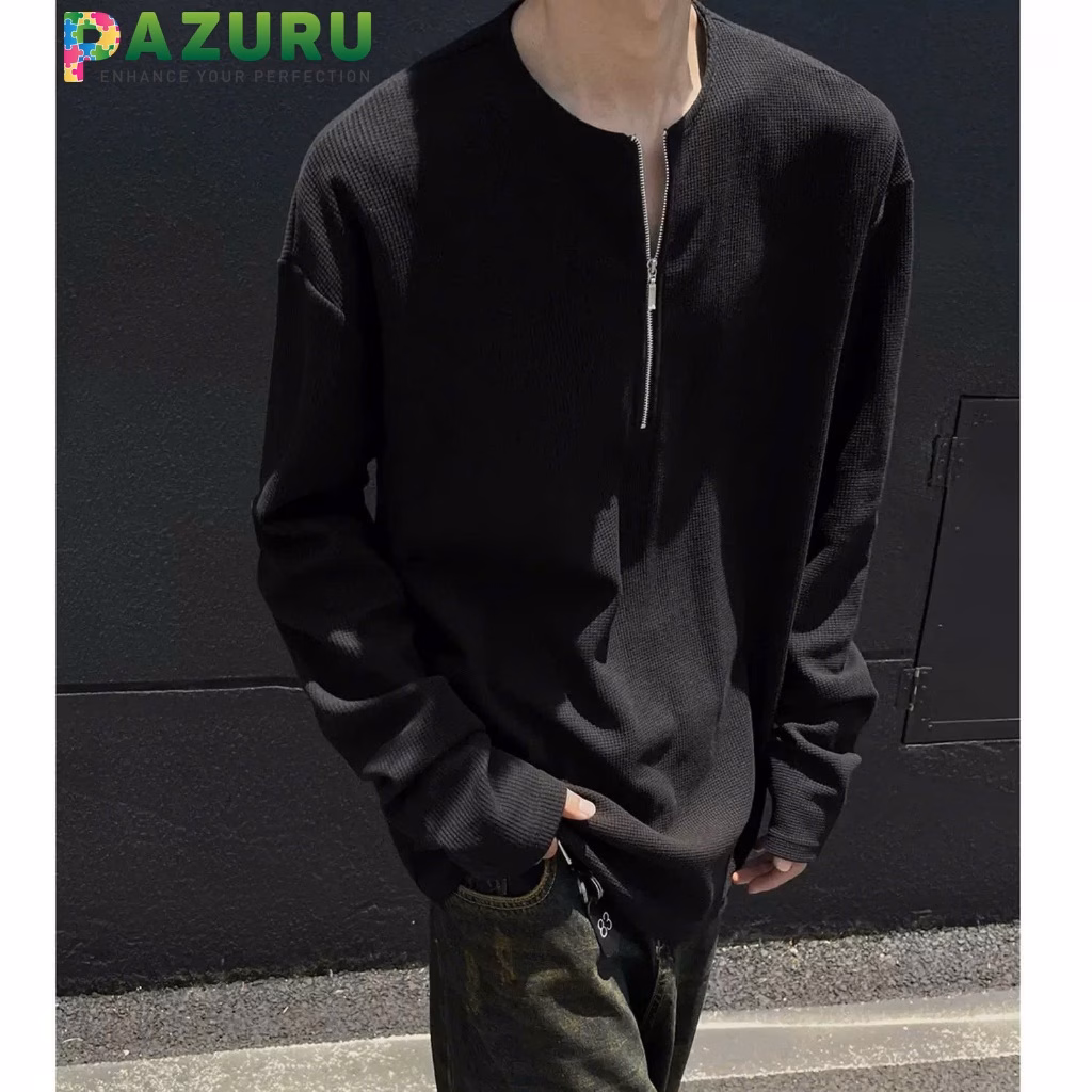 🔥 Áo thun PAZURU unisex SHINY Thu Đông tay dài cổ tròn phối khóa kéo form rộng Menswear đang giảm giá!