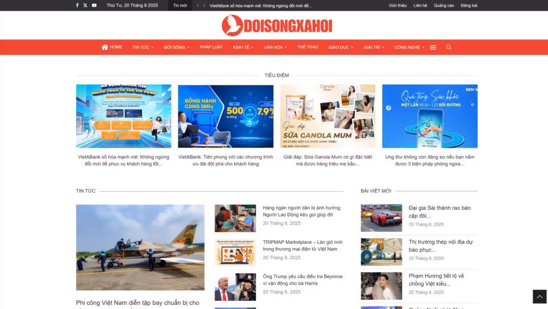 Các lĩnh vực tin tức mà doisongxahoi.com cung cấp bao gồm: