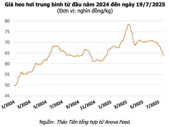 Giá heo hơi tại Việt Nam tiếp tục giảm mạnh vào sáng ngày 19/7, với mức giảm đáng kể tại các khu vực miền Bắc, miền Trung – Tây Nguyên và miền Nam. Tại miền Bắc, giá heo hơi hiện đang được bán ra với giá từ 63.000 – 64.000 đồng/kg. Hà Nội, Hải Phòng, Tuyên Quang, Bắc Ninh, Phú Thọ, Thái Nguyên và Hưng Yên đang neo ở mức 64.000 đồng/kg; trong khi đó, Lào Cai, Lạng Sơn, Quảng Ninh và Sơn La ở mức 63.000 đồng/kg.