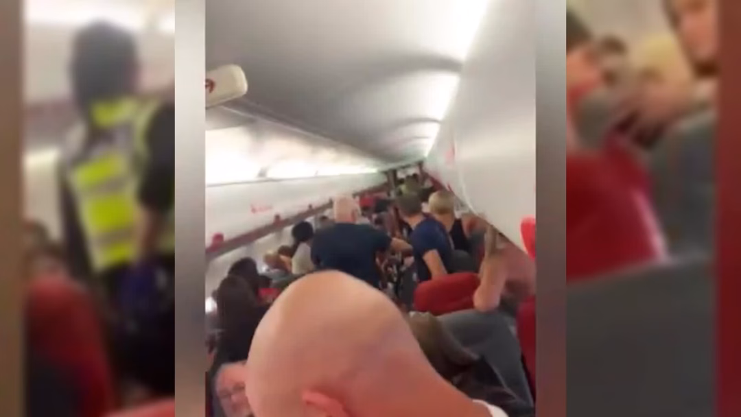Đoạn video ghi lại sự việc cho thấy một cuộc xô xát đã xảy ra ở phía sau máy bay khi hai người đàn ông trong trạng thái mất kiểm soát bắt đầu gây rối. Theo BBC, nhân viên của hãng Jet2 và cảnh sát đã phải vật lộn để trấn áp họ, một tình huống mà nhiều hành khách mô tả là hỗn loạn và gây sốc.