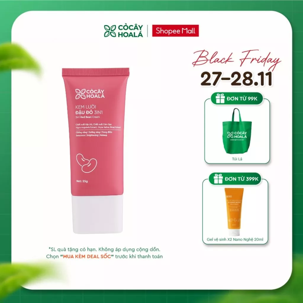 🔥 [HỎA TỐC] Kem Lười Đậu Đỏ 3in1 Cỏ Cây Hoa Lá 25g Chống nắng, Dưỡng sáng, Kem Nền Trang Điểm, Dịu Mát Da đang giảm giá!