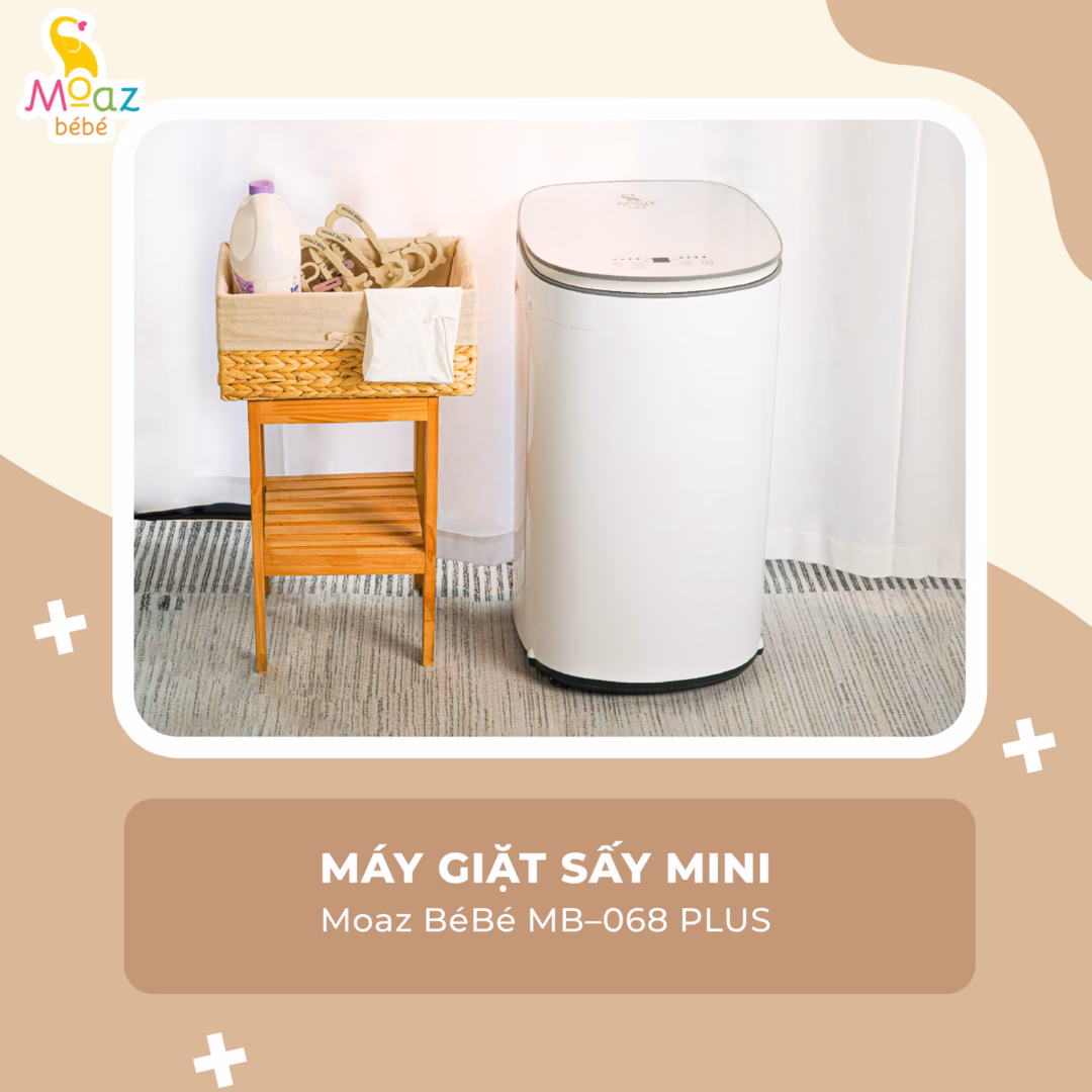 🔥 Máy giặt quần áo kèm sấy khô tự động Moaz Bebe MB068 Plus cho bé cửa trên an toàn đang giảm giá!