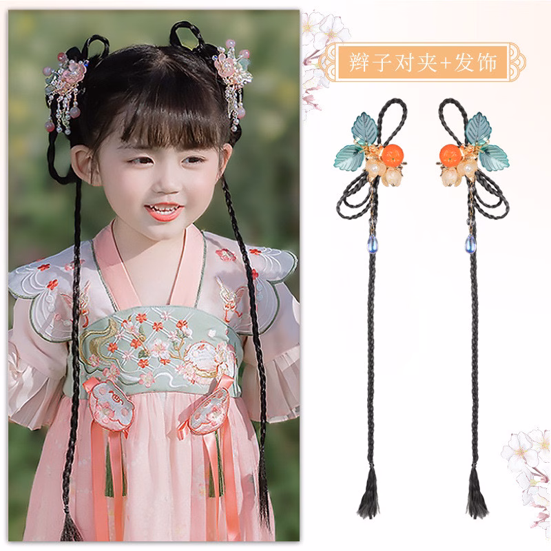 Mũ trẻ em Hanfu phong cách cổ xưa tóc giả nữ bện phụ kiện kẹp tóc – Lựa chọn tuyệt vời cho bé gái
