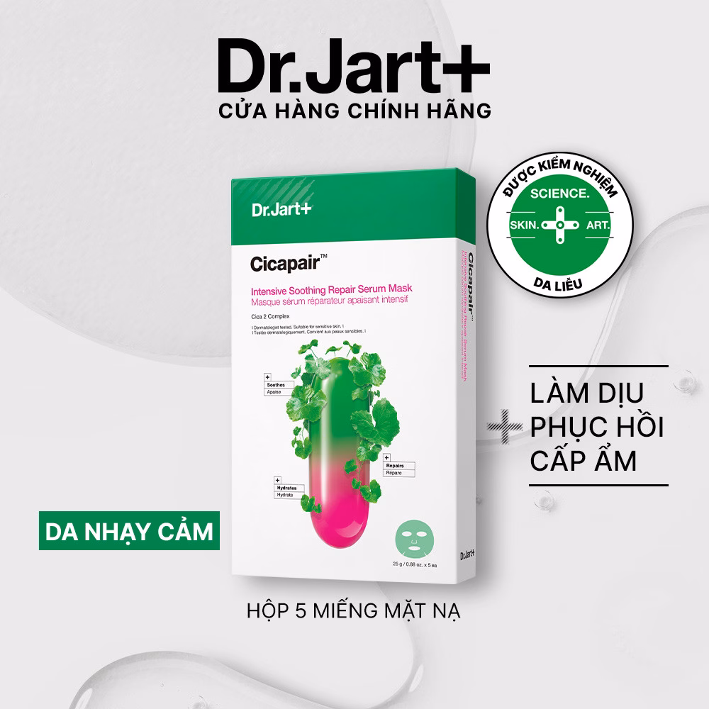 Dr.Jart+ Cicapair là một sản phẩm mặt nạ serum làm dịu và phục hồi, được thiết kế dành cho da nhạy cảm. Sản phẩm này chứa các thành phần như panthenol và niacinamide, giúp làm dịu và tái tạo da. Với công thức độc đáo, Dr.Jart+ Cicapair không chỉ giúp giảm mẩn đỏ mà còn cấp ẩm sâu cho da.