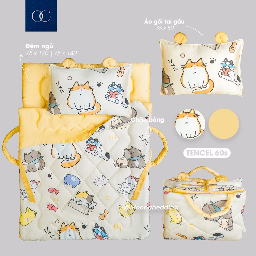 🔥 Bộ chăn gối nệm cho bé gấp gọn Tencel 60s Moona Bedding cao cấp, set mền mầm non, mẫu giáo, tiểu học đang giảm giá!