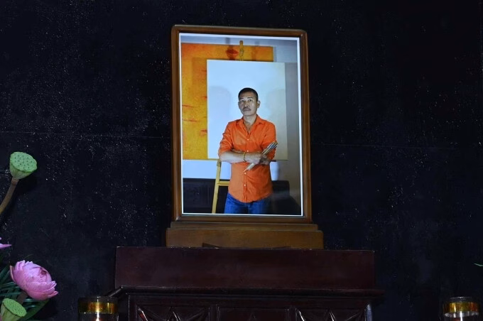 Gia đình và bạn bè của họa sĩ đã chuẩn bị lễ tang một cách chu đáo, với sự hiện diện của nhiều hoa sen và hoa hồng – hai loài hoa yêu thích của ông. Di ảnh của họa sĩ là bức chân dung ông đứng trước tấm toan trắng, trên tay là bút vẽ.