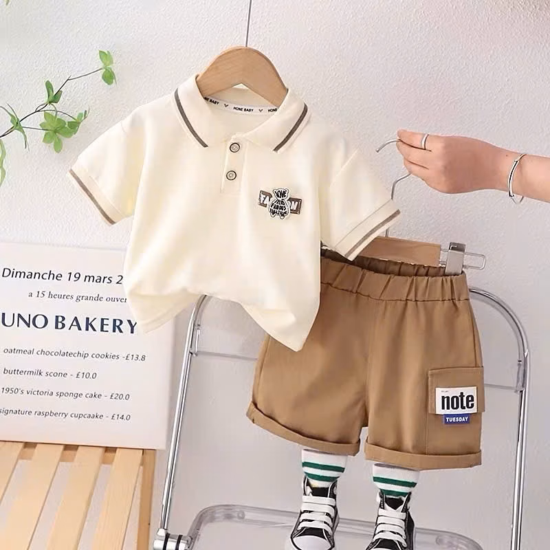 🔥 Sét quần áo Thun Cộc Tay + Quần Short Thời Trang Mùa Hè Bé Trai —–MÃ POLO KẺ GẤU đang giảm giá!