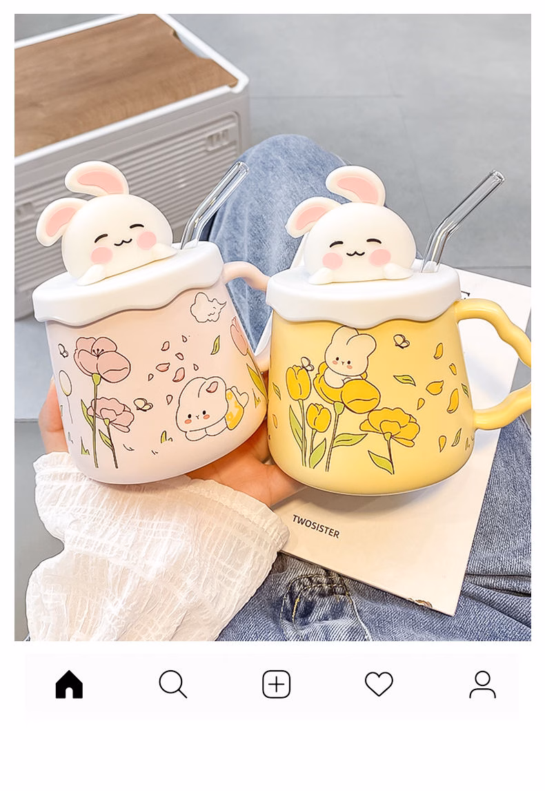 🔥 Cốc uống nước cốc sứ hình thỏ dễ thương làm quà sinh nhật quà tặng 420ml+Ống hút thuỷ tinh đang giảm giá!
