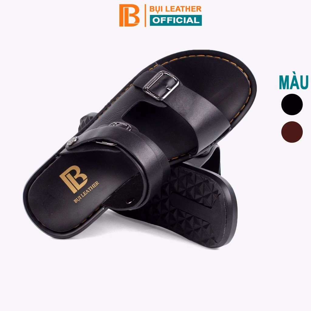 🔥 Dép nam quai ngang da bò Nappa cao cấp Bụi Leather E101, đế đúc nguyên khối khâu viền thủ công đang giảm giá!