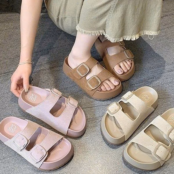 🔥 Dép nữ quai ngang da lộn 2 quai khóa cài, phong cách thời trang lý tưởng cho mùa hè đang giảm giá!
