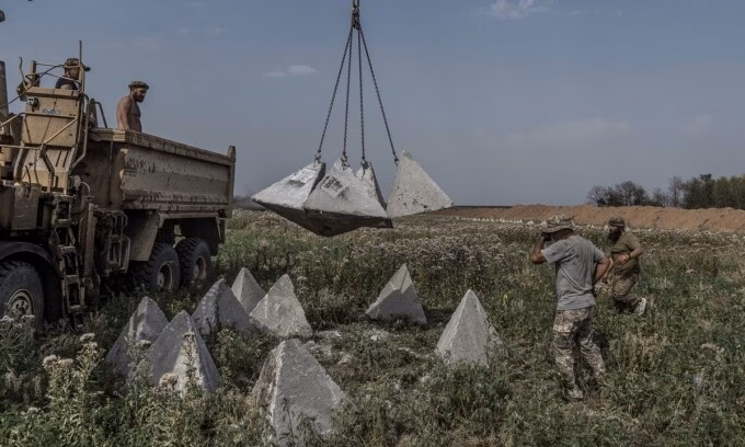 Ukraine đang phải đối mặt với một thách thức lớn trong việc thiết lập hàng trăm km phòng tuyến để ngăn chặn đà tiến công của Nga. Quân đội Ukraine đang đẩy mạnh nỗ lực xây dựng một hệ thống phòng tuyến tham vọng nhất từ trước đến nay, bao gồm việc dựng lên các dải chướng ngại vật “răng rồng” và đào hào để cản trở đối phương. Tuy nhiên, việc xây dựng hệ thống phòng tuyến này đang gặp phải nhiều vấn đề, từ chậm trễ tiến độ đến việc nhiều quan chức tham gia dự án bị bắt vì cáo buộc tham nhũng.