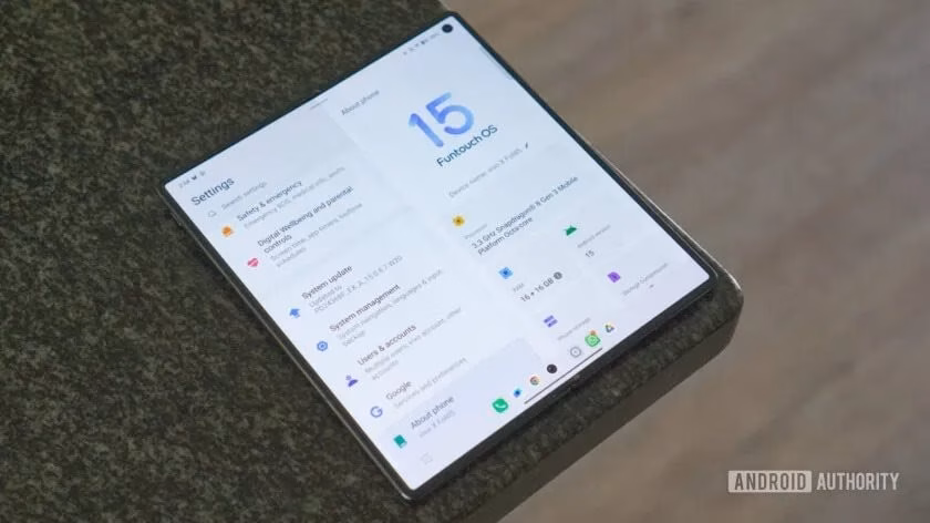Về phần mềm, Vivo X Fold5 chạy trên Fun Touch OS 15 với cơ chế đa nhiệm hoàn toàn mới Origin Workbench. Điều này không chỉ giúp nâng cao trải nghiệm người dùng mà còn mang lại sự tiện lợi khi làm việc hoặc giải trí trên thiết bị.