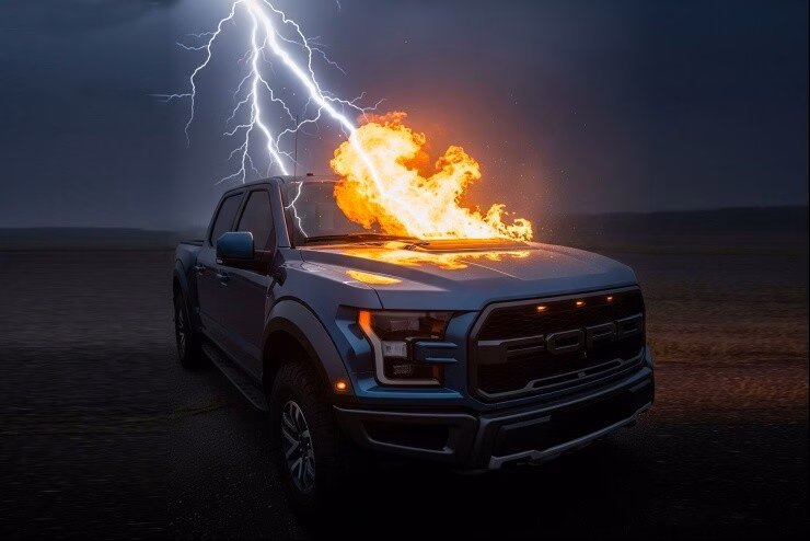 Sự cố bắt đầu khi một tia sét đánh trúng ăng-ten của xe, khiến hệ thống radio bị mất sóng. Đây là dấu hiệu đầu tiên cho thấy một điều gì đó bất thường đang xảy ra. Ngay sau đó, khói bắt đầu bốc lên từ mui xe, báo hiệu một tình huống khẩn cấp.